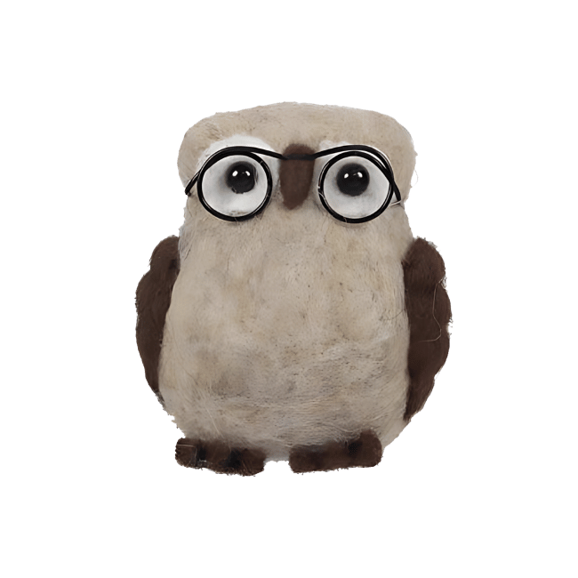 Add a pop of personality to your home decor with our Felted Wool Sitting Owl With Glasses. Hand-crafted with soft and durable felted wool, this charming owl comes in both green and tan options. Perfect for any animal lover, these owls add a touch of whimsy to any space.