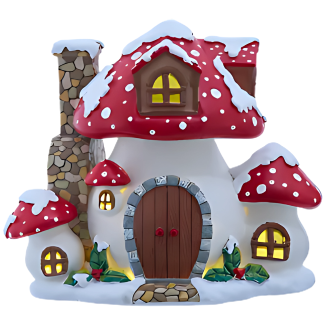 This Merry Little Mushrooms Cottage Tabletop from Kurt Adler is a whimsical and charming decoration that brings a touch of enchantment to your living space. This delightful tabletop piece features a quaint cottage surrounded by merry mushrooms, creating a scene that captures the magic and coziness of a woodland retreat. Crafted with attention to detail, the Merry Little Mushrooms Cottage Tabletop showcases a miniature mushroom cottage nestled among vibrant mushrooms. The playful design, with its earthy tones and whimsical details, evokes a sense of wonder and invites you to step into a magical world where nature and fantasy come together.
