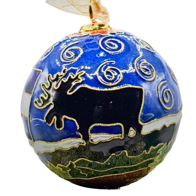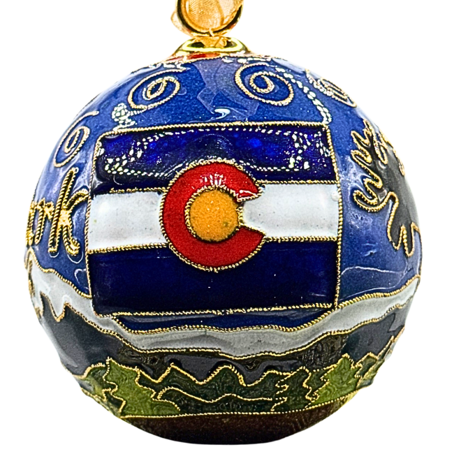 Celebrate Colorado's natural beauty with our Colorado Flag With Moose Cloisonne Ornament. This exquisite handcrafted piece features the iconic Colorado flag design paired with a majestic moose silhouette, capturing the spirit of the Centennial State. The detailed cloisonne technique creates vibrant, lasting colors that will bring a touch of Colorado charm to your holiday tree or year-round display.
