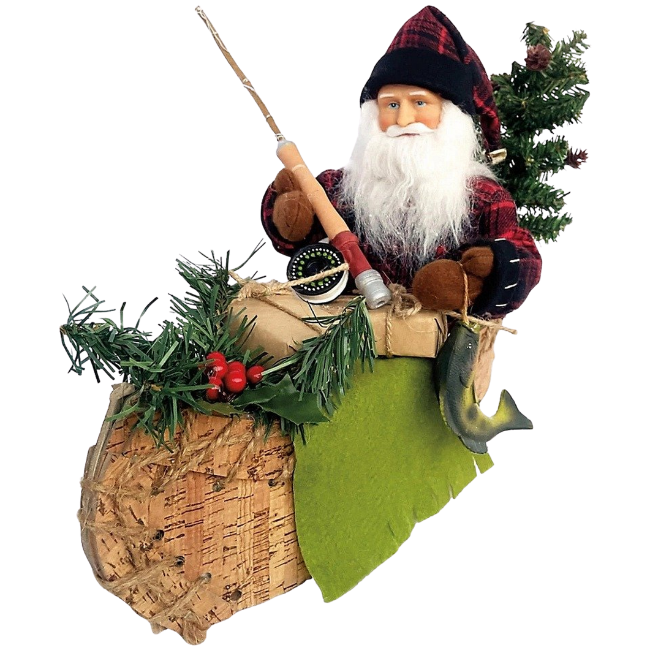 Bring holiday cheer to your fishing adventures with the 16" Canoe Fishing Claus. This charming decoration features Santa Claus leisurely paddling a canoe, perfectly blending festive spirit with a love for the outdoors. Ideal for adding a unique touch to your home, office, or fishing cabin, it’s a delightful reminder that Christmas and relaxation go hand in hand.