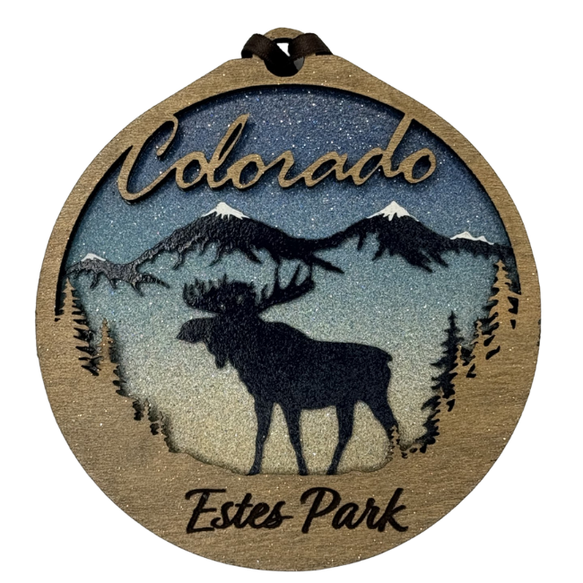 Moose Estes Park Blue Ornament