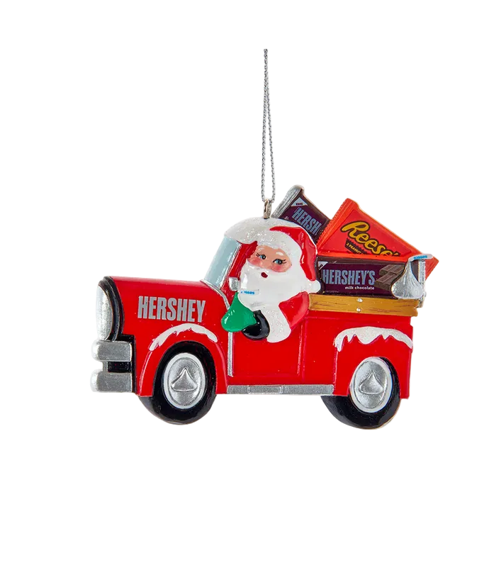 Kurt Adler's Hershey's™ truck with candy is a sweet addition to your holiday décor or Christmas tree. It features Santa holding a green Hershey's™ Kiss in the drivers seat and assorted Hershey's™ candy in the back.
