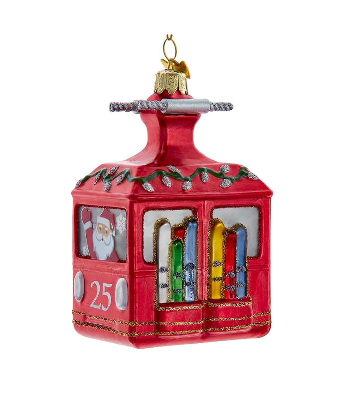Noble Gems™ is a collection of beautiful glass ornaments celebrating different occasions, meant to last year after year so that you could preserve and reflect upon your memories each holiday season. Each ornament is an intricate work of art that is sure to be treasured. This Noble Gems™ Ski Gondola Glass Ornament features Santa in a gondola ready to hit the ski slopes.