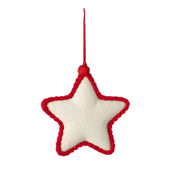 This classic Christmas ornament from Sullivans Home Decor is sure to add a festive touch to any tree. Crafted with a plush red and white star shape, it features a pompom edge that gives it a cozy, vintage feel. A sizeable star, it's big enough to take center stage without overpowering smaller ornaments. Its traditional color scheme makes it a perfect match for ornaments both old and new. Whether you're sprucing up your tree or starting your first collection, this cheerful star is a great addition for the holiday season. Display it proudly for all to see and put everyone in a festive mood.