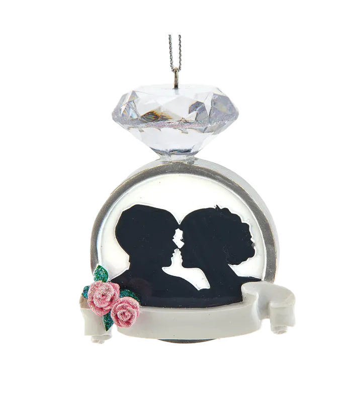 This wedding ring couple ornament from Kurt Adler is a fun and festive addition to any holiday décor or Christmas tree. Perfect for newlyweds, couples who have spent a lifetime together and everything in between, this ornament has ample room for personalization.