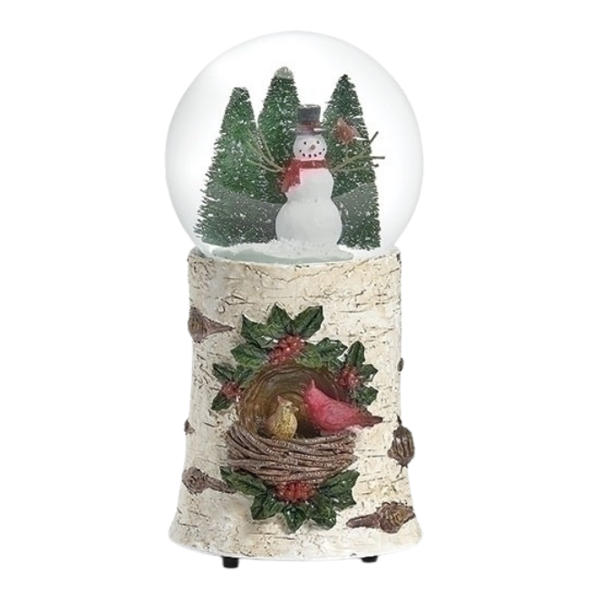 Snowman With Cardinal Birch Base Snow Globe Musical