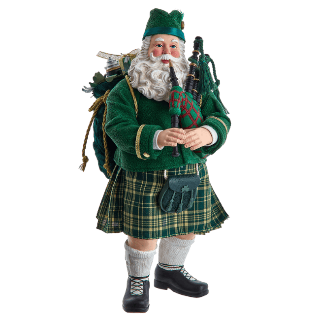 10.5" Fabriché™ Musical Irish Bagpiper Santa
