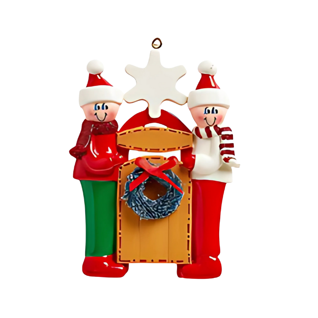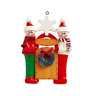 The Sledding Family ornament features a delightful scene of a family enjoying a sled ride. Its detailed design and festive colors capture the joy of winter fun, making it a charming addition to your holiday decorations.