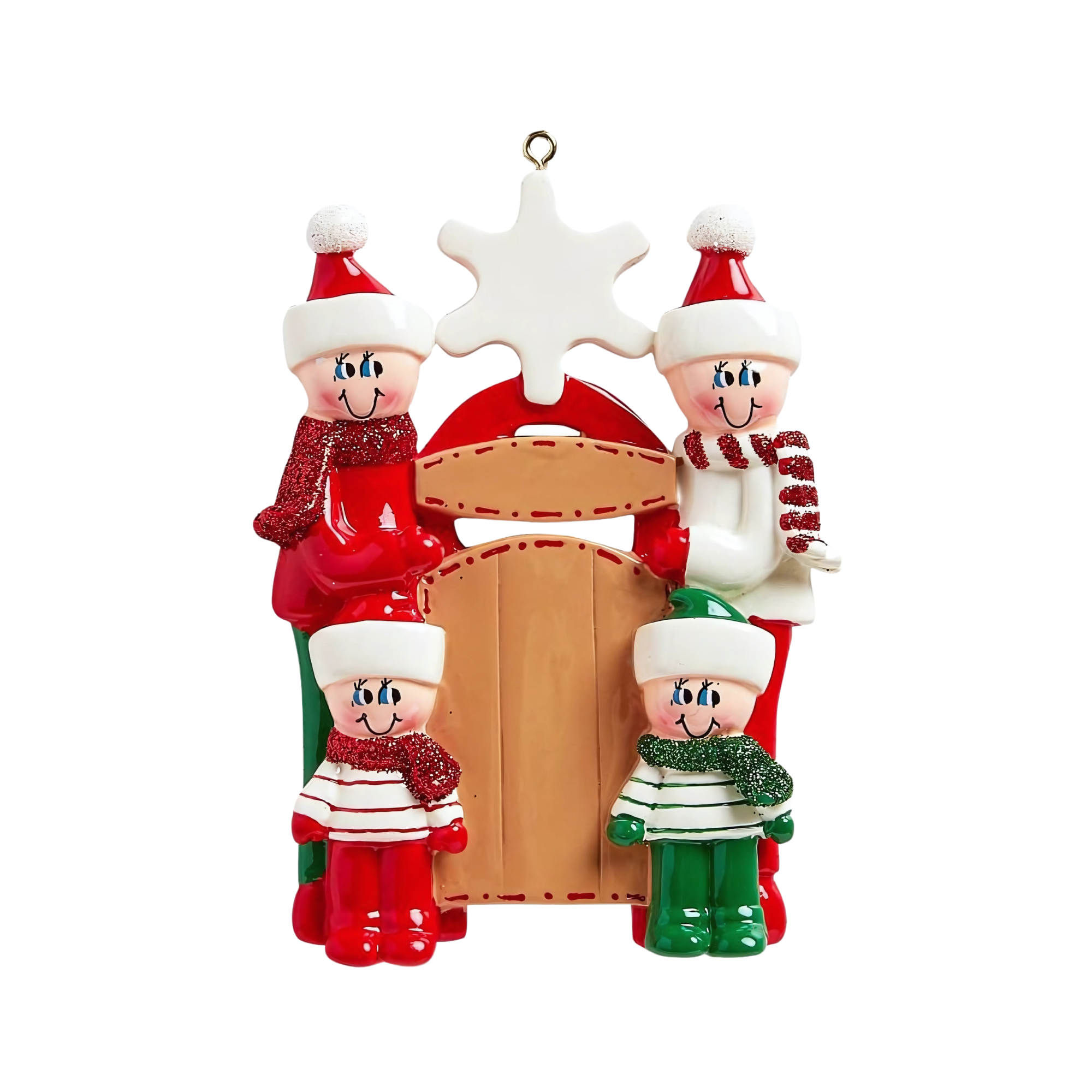 The "4 Sledding Family" ornament features a lively family of four enjoying a fun-filled sledding adventure. With vibrant colors and playful details, it captures the excitement and joy of winter activities. This ornament adds a festive and energetic touch to your holiday tree, celebrating family fun and the spirit of the season!