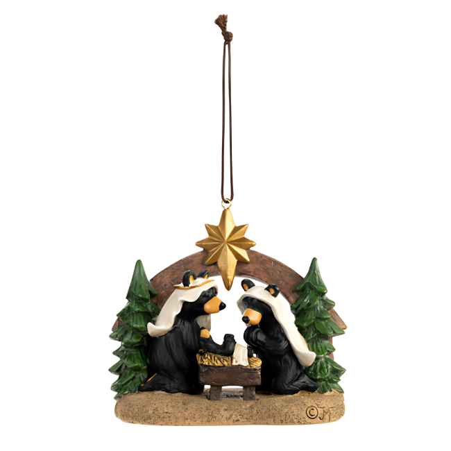 This heartwarming ornament features the Bearfoots Beartivity scene, showcasing a whimsical interpretation of the nativity with adorable bear figures. Each bear is beautifully detailed, depicting key characters in the beloved story, all set against a charming backdrop. The playful design adds a unique touch to traditional holiday decor, making it perfect for families and bear enthusiasts alike. Celebrate the spirit of Christmas with this delightful Bearfoots ornament, adding a warm and joyful atmosphere to your holiday celebrations!