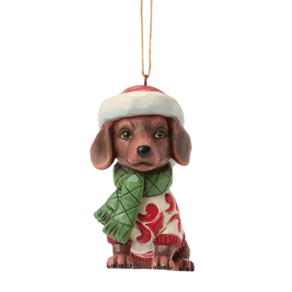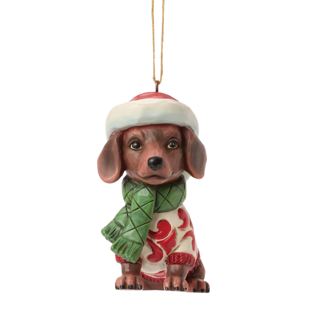 This adorable Jim Shore ornament features a playful Dachshund dressed in a festive scarf, ready to spread holiday cheer. Hanging from your tree, the happy pup wishes you a merry Woofmas with joy that will keep you howling jingle paws all season long!
