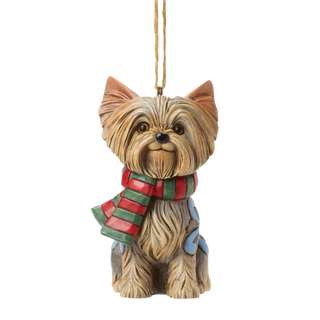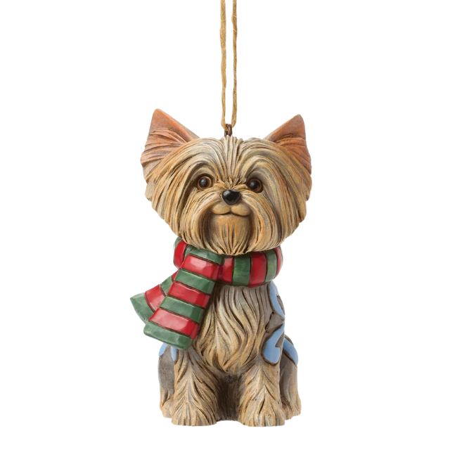 This adorable Jim Shore ornament features a playful Yorkie dressed in a festive scarf, ready to spread holiday cheer. Hanging from your tree, the happy pup wishes you a merry Woofmas with joy that will keep you howling jingle paws all season long!
