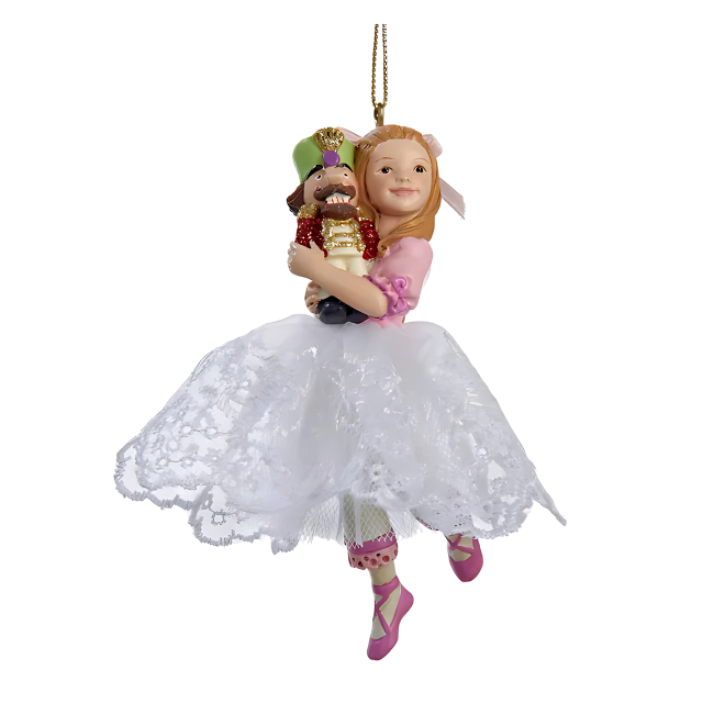 This Kurt Adler Clara ornament is a charming addition to any holiday décor or Christmas tree. This ornament features Clara from The Nutcracker ballet in a pretty pink and white dress complete with tulle skirt hugging her beloved nutcracker. Read more