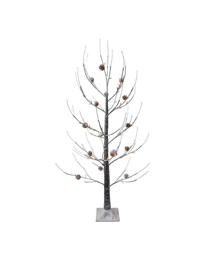 This 5' Warm White LED Flocked Brown Twig Tree with Pinecones from Kurt Adler is a festive and fun addition to any holiday home décor! This 5' tall brown twig tree boasts 120 warm white LED lights and decorated with pinecones with an 118" lead wire. The perfect addition to any home or office!