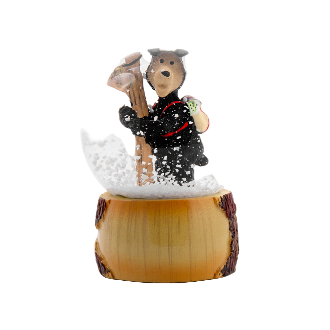 The Hiking Bear Snowglobe features an adventurous bear trekking through a serene winter forest. Surrounded by swirling snow, this charming bear holds a hiking staff, embodying the joy of exploring the great outdoors during the holiday season. The perfect decoration for nature lovers, this snowglobe brings a touch of wilderness to any winter display!