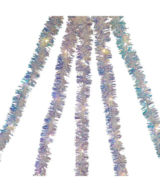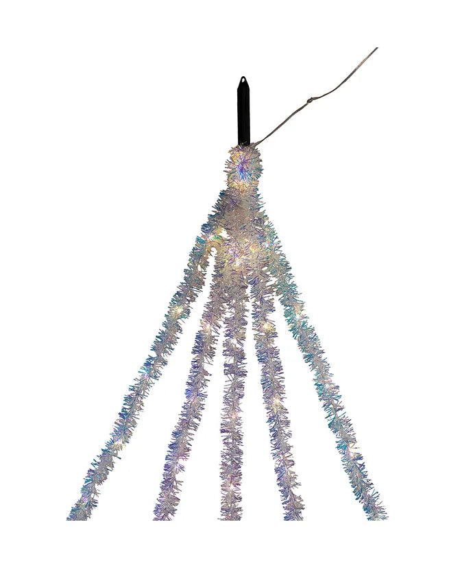 Kurt Adler's 100-light silver iridescent tinsel cascade light set is a new addition to our extensive light line. Each set includes 5 strings with 20 superbright warm white LED lights on each string. This unique light set offers a wide variety of uses and would be a terrific addition to any home or holiday décor.