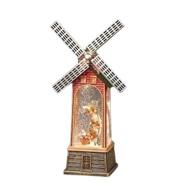 This 11.25-inch lighted musical swirl windmill features Santa with a sleigh. The dynamic design includes swirling lights and cheerful music, creating a festive and captivating centerpiece for your holiday decor.