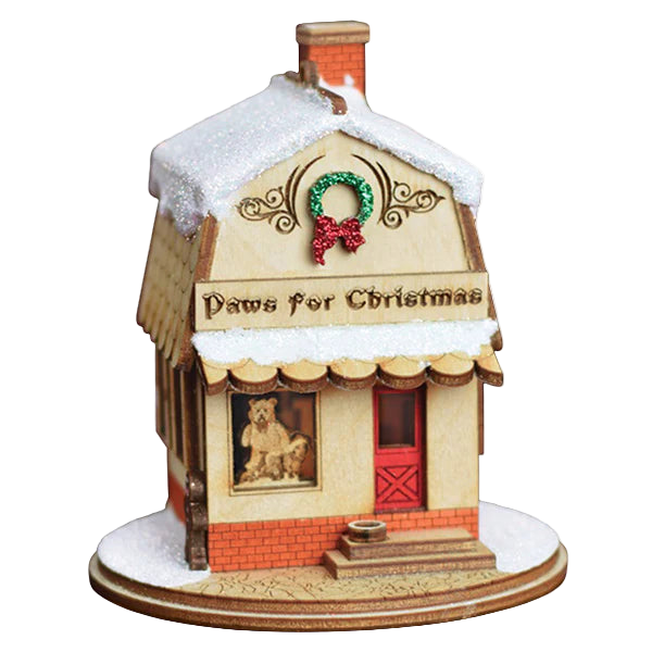 This charming ornament stands 3.5 inches high, 3.5 inches wide, and 4 inches deep. It features a delightful pet shop theme, complete with festive decorations and adorable details. Perfect for celebrating the holiday season with a touch of pet-friendly cheer!