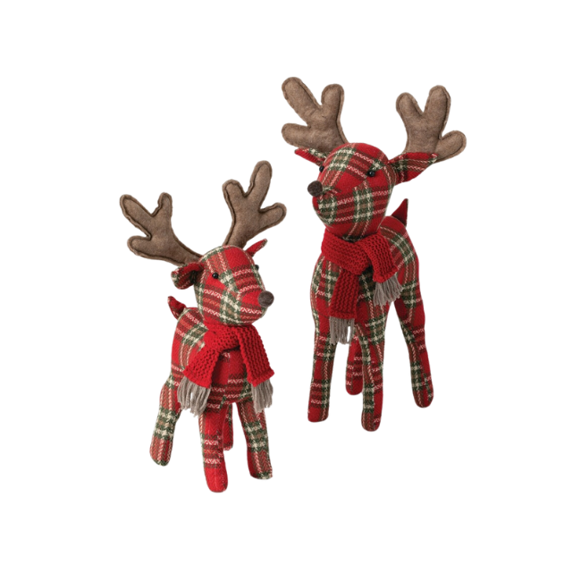 The Small Plaid Reindeer with Scarf is a charming and playful holiday decoration. Dressed in a classic plaid pattern and a cozy scarf, this reindeer adds a touch of whimsy and warmth to your festive décor. Perfect for displaying on mantels, shelves, or as part of a holiday centerpiece, this delightful piece brings a cheerful and rustic charm to any space. Ideal for creating a cozy, festive atmosphere during the holiday season!