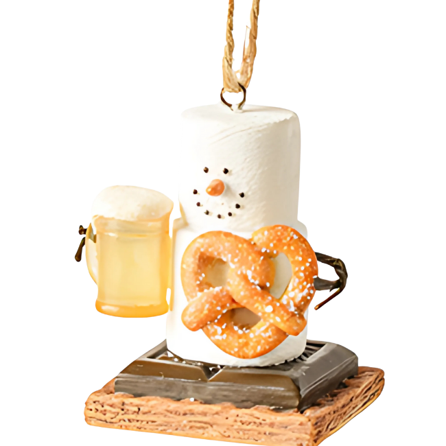 Add a cozy touch to your holiday decorations with the Smores Beer & Pretzel Ornament. This unique ornament celebrates the joy of sharing favorite treats and drinks, bringing warmth and cheer to your festive space. Its detailed design makes it a perfect gift or a special addition to your own collection, reminding you of good times and holiday togetherness.