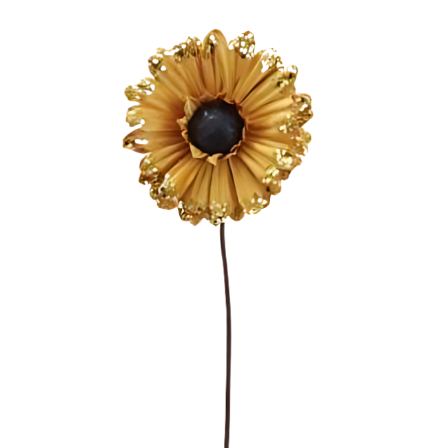 Decorate your home with this gold glittered sunflower pick from Kurt Adler. This pick features a traditional sunflower design with gold glittered accents on each of the petals. The wire design allows this pick to be used for multiple holiday decorating needs such as embellishing a garland or adding some sparkle to a wrapped gift!